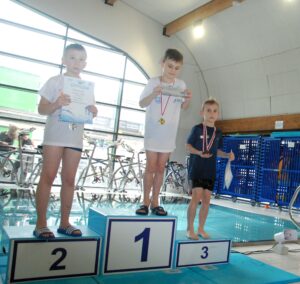 Uczestnicy biorący udział w zawodach na pływalni w Szkole Podstawowej nr 10 być może nie imponowali wzrostem, ale ogromne wrażenie robiło ich ogromne serce do walki sportowej. Uczniowie z pływackich klas I objętych patronatem MKP Szczecin po raz pierwszy rywalizowali o medale i dyplomy z rówieśnikami z innych szkół. W atmosferze żywiołowego dopingu ze strony licznie przybyłych opiekunów, kolegów i trenerów młodzi sportowcy z zacięciem walczyli z „wodnym żywiołem” na dystansach 25 m. st. grzbietowym i 25 m. st. dowolnym. Prezentowane sposoby skoków startowych jak i techniki pokonywania dystansu były bardzo zróżnicowane i czasem szokowały pomysłowością uczestników rywalizacji. Wiele emocji dostarczył wyścig drużynowy 10 x 25 m. nogami z deską. Najszybciej z tym zadaniem uporali się reprezentanci Centrum Mistrzostwa Sportowego, którzy nieznacznie pokonali uczniów ze Szkoły Podstawowej nr 56 i pływaków ze Szkoły Podstawowej nr 10. Wśród historycznych pierwszych medalistów w tym roczniku znaleźli się: